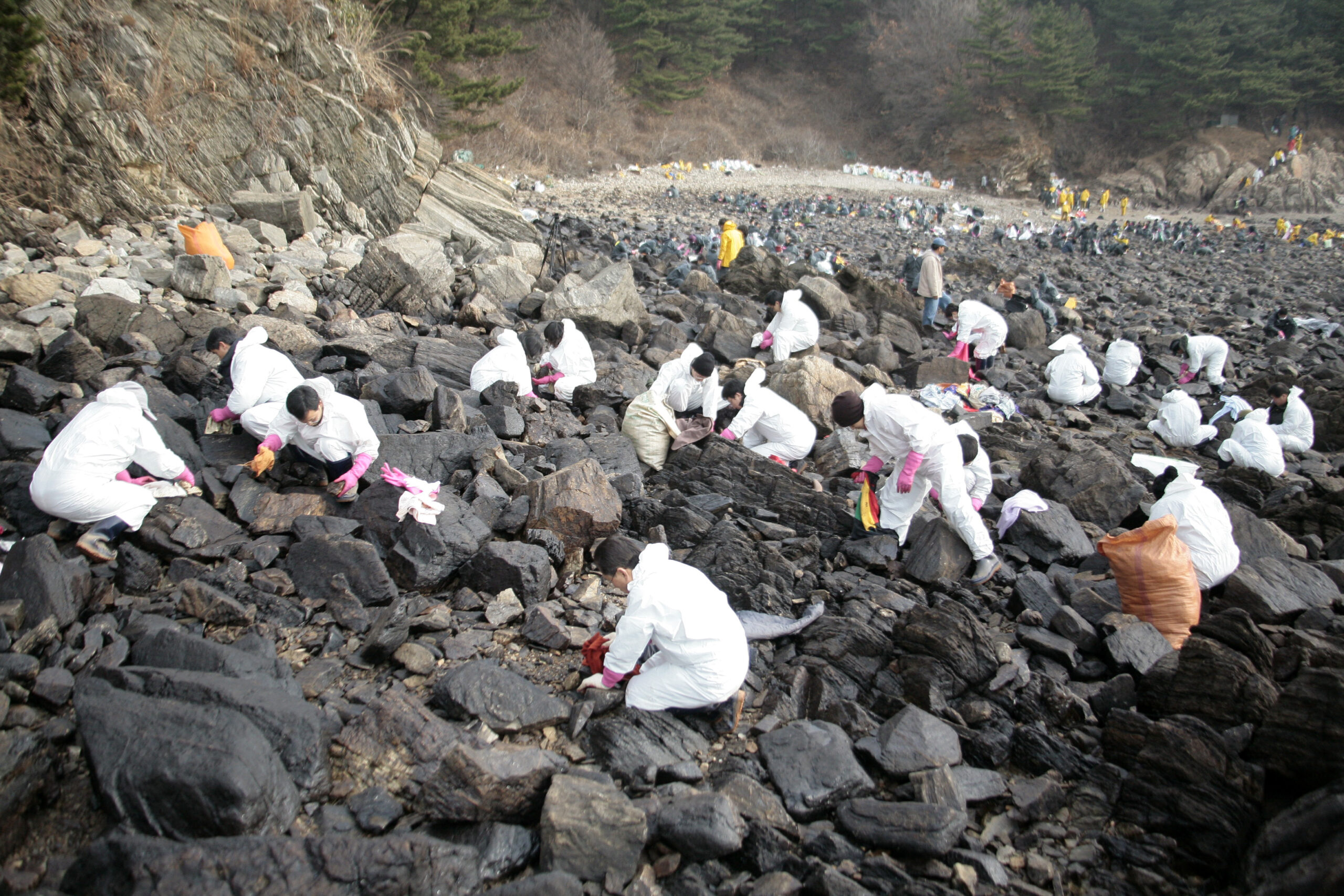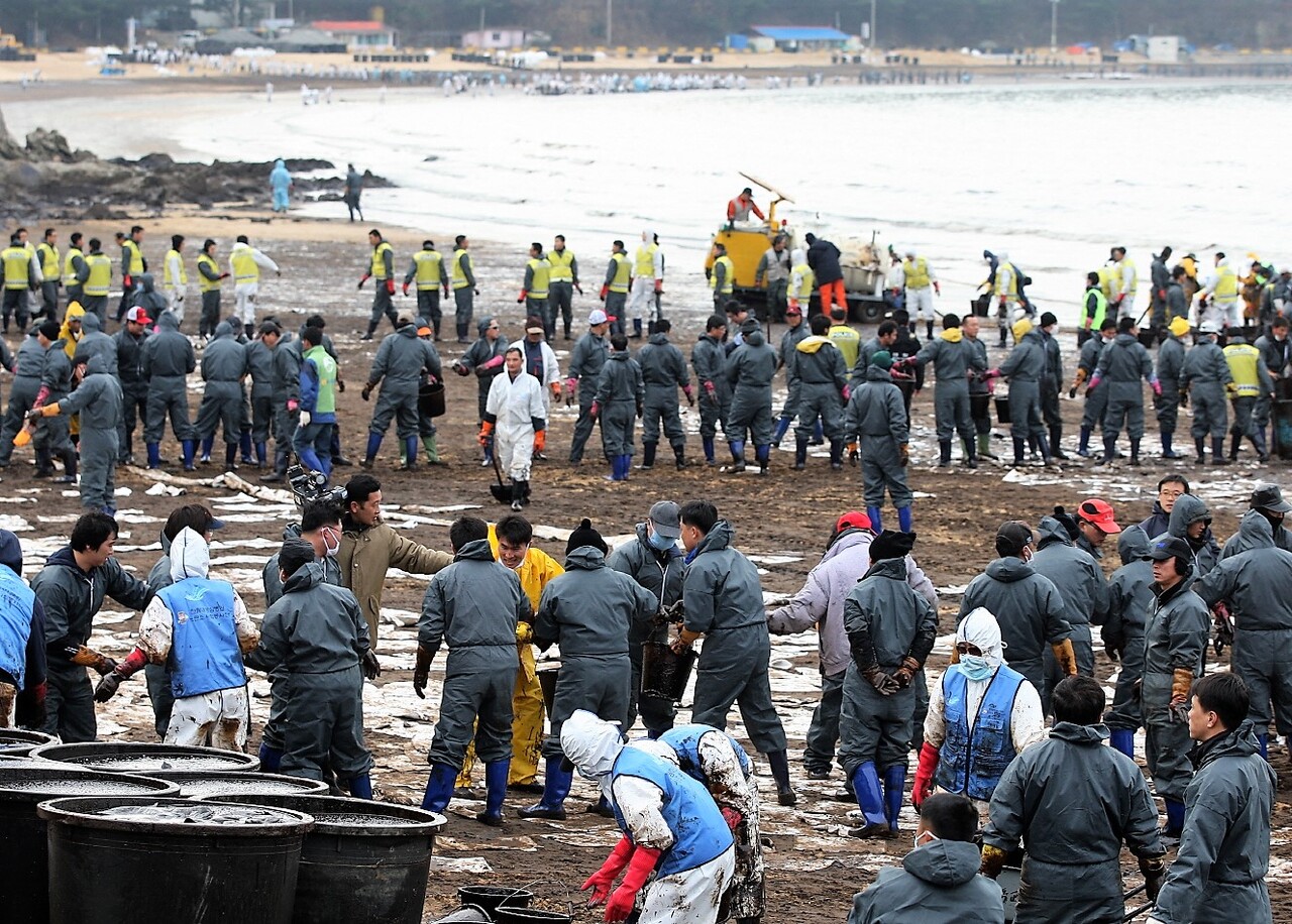 Between the day of the accident and the following year, an astonishing 1.23 million volunteers flocked to Taean from every corner of the country. To put that into perspective, that was roughly 2.5% of South Korea’s entire population at the time, abandoning their weekend plans to kneel in the freezing coastal winds.