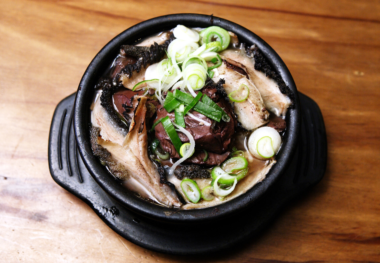 This is arguably the most popular and accessible hangover cure nationwide. The dark, spicy broth is boiled for hours with large chunks of pork spine meat that easily falls off the bone. The addition of perilla seed powder gives it an incredible nutty depth.