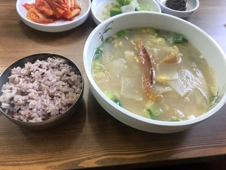| Hwangtae Haejangguk (ํฉํํด์ฅ๊ตญ) | Milky, clean, and non-spicy. | Dried pollock, radish, tofu, egg, green onions. |