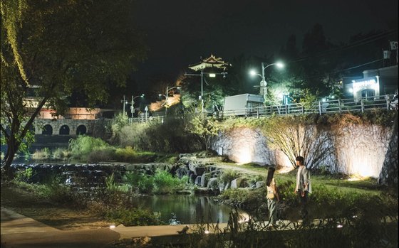 Aside from drama hunting, the fortress itself is vast and packed with architectural marvels. My personal favorite spot is Banghwasuryujeong (방화수류정). Originally built as a military observation tower, it sits atop a small rocky cliff overlooking a serene willow-fringed pond called Yongyeon (용연). It is wildly popular among young Koreans for evening picnics and sunset photography, and it actually served as a dating spot for characters in Lovely Runner.