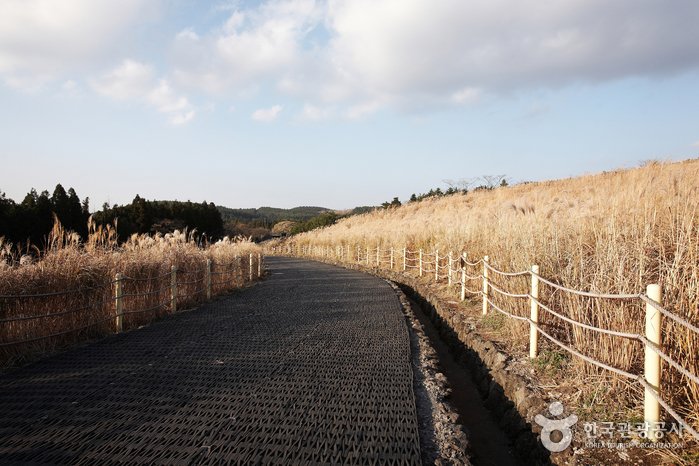 Sangumburi, Natural Monument No. 263, is a crater exceeding 2km in circumference, famously featured as an impressive location in the movie ‘Love Wind Love Song’. It is the only Maar volcano in Korea and globally rare, uniquely formed on Jeju Island by an explosive eruption that ejected rock without lava or ash, leaving only the crater. - Kim Young-gap Gallery Dumoak