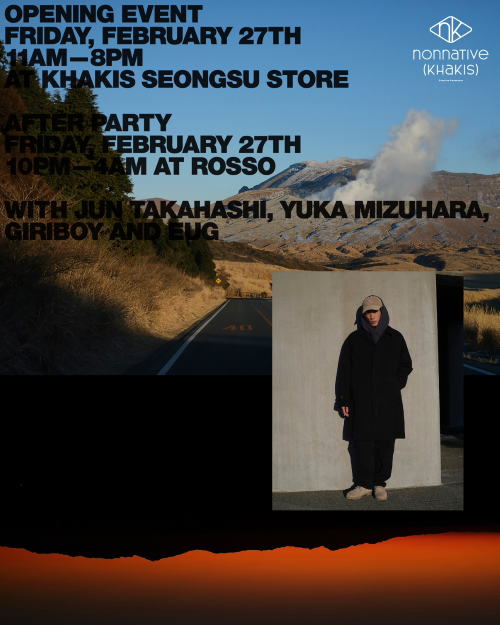 Khakis and Nonnative are holding a collaboration pop-up in Seongsu. The pop-up will showcase the entire collaboration collection and campaign visuals. There will be a DJ session and after-party on the opening day, February 27th. The after-party will be held at ROSSO from 22:00 to 04:00 on February 27th.