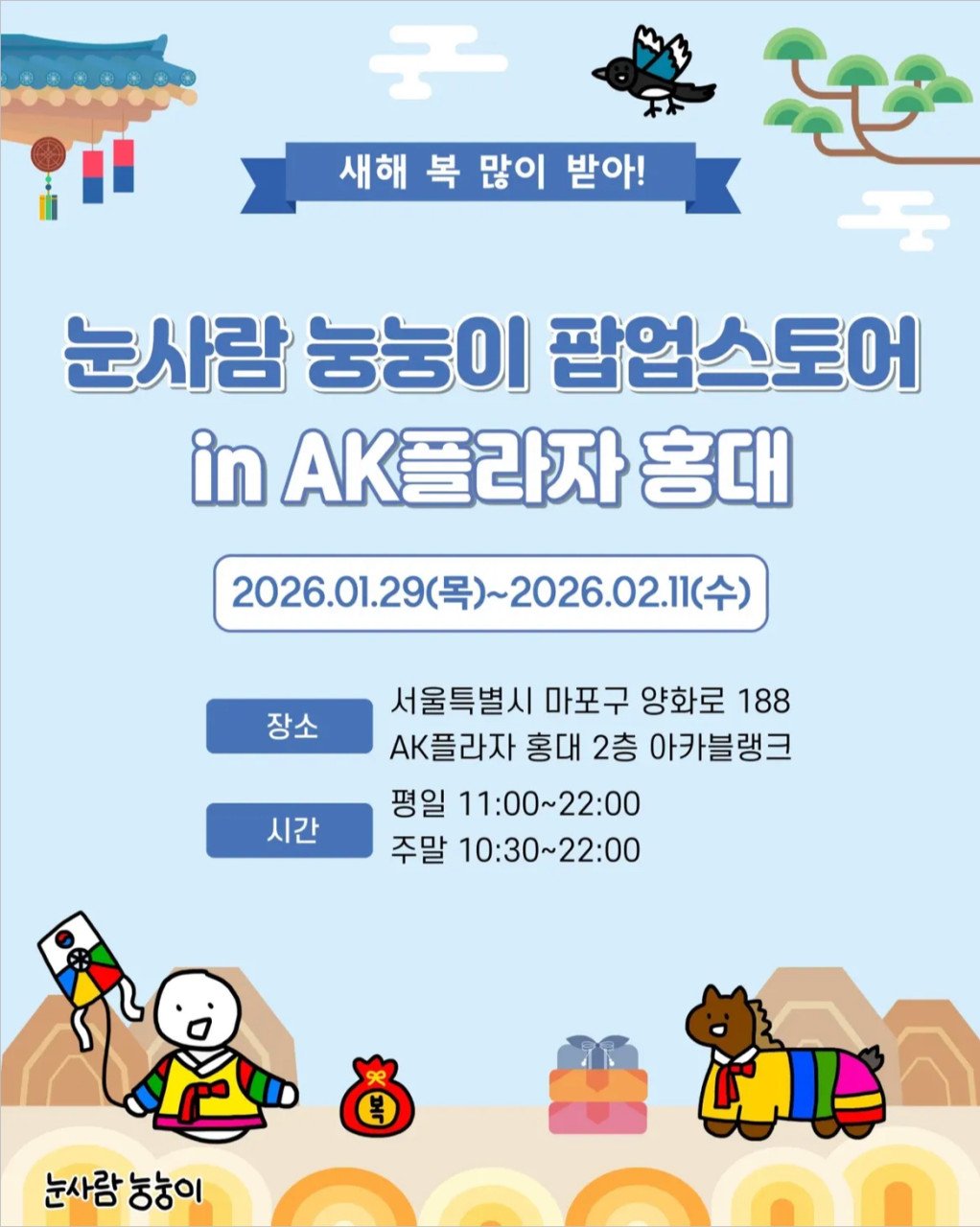 Step into the whimsical world of Snowman Nungnungi! Celebrate the New Year with an adorable popup store at AK Plaza Hongdae, featuring exclusive merchandise and special gifts.