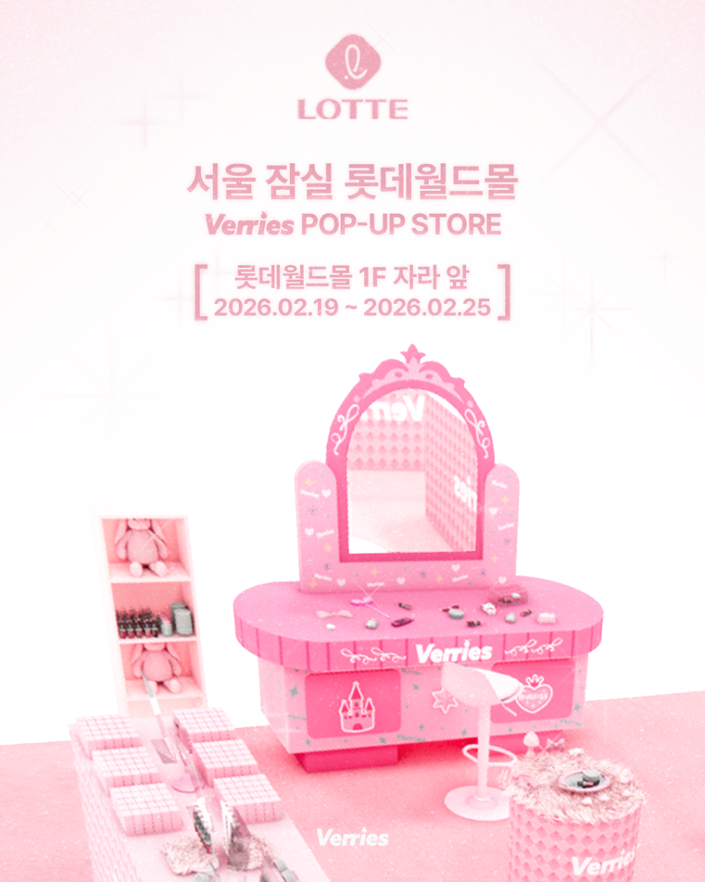 The popular Verries popup, which was a hit at The Hyundai Seoul, is now open at Lotte World Mall in Jamsil! Experience Verries’ unique atmosphere and items in a soft and romantic mood.