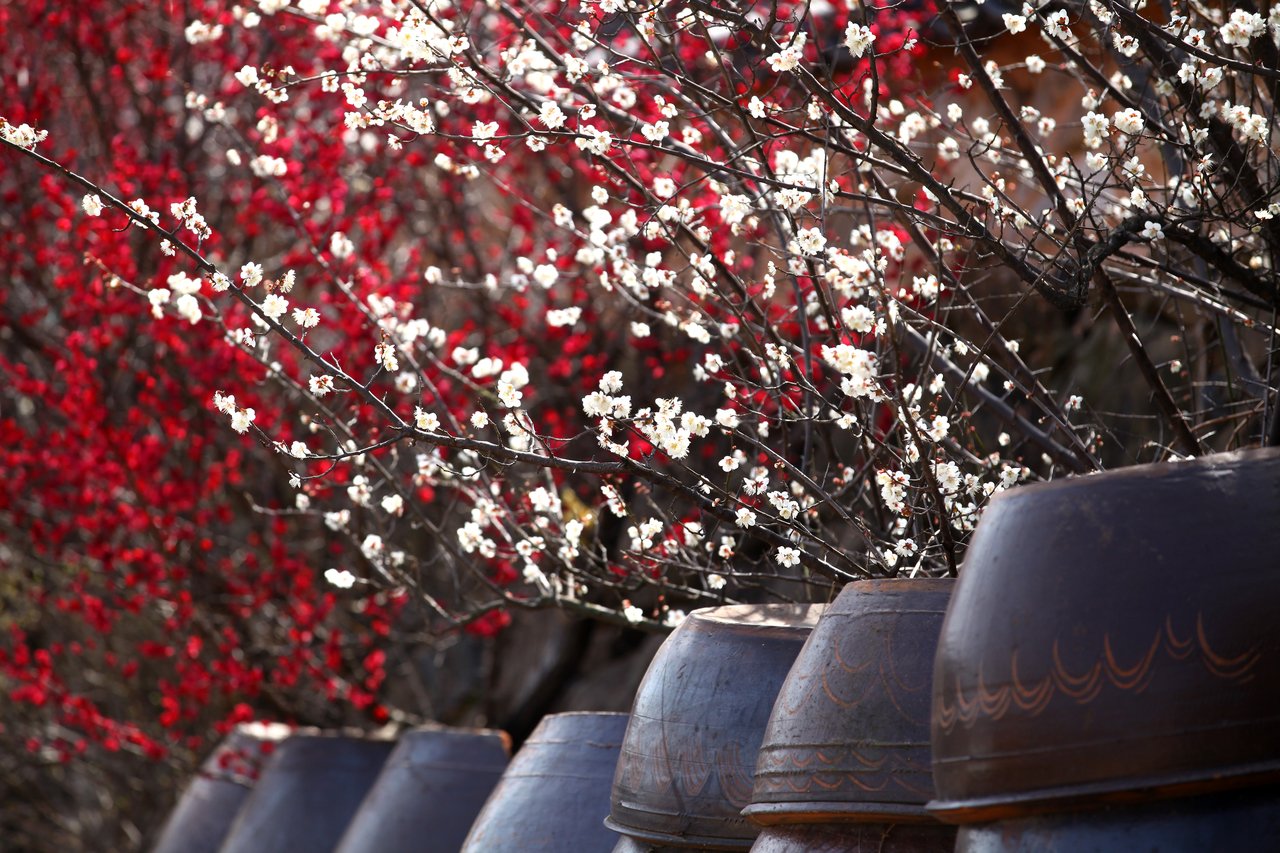 - Viewing Point (Must-Visit): Hike up to the Jangdokdae (Earthen Jar Platform). The view of over 2,000 traditional Korean pottery jars with the white plum blossoms and the river in the background is the most iconic photo spot in Korea.