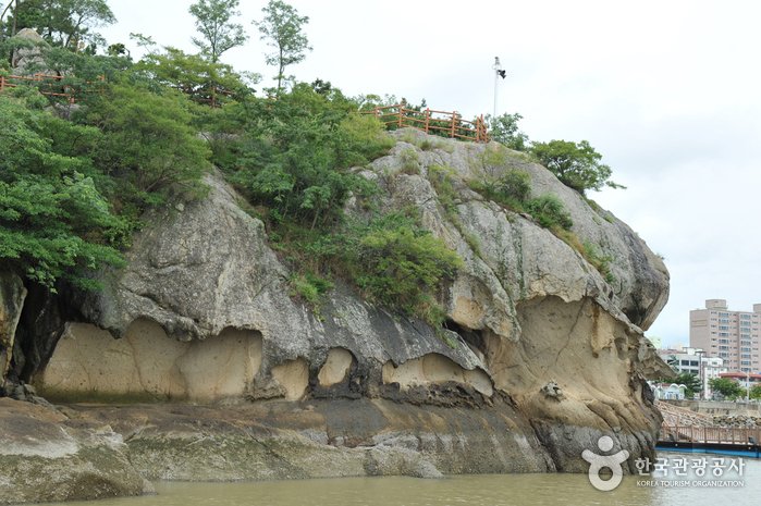 Mokpo Gatbawi Rock features two main formations, Jungbawi and Satgatbawi, though Satgatbawi is commonly referred to by either name. The name Gatbawi (Hat Rock) originates from the two rocks near the sea resembling monks wearing traditional straw hats, while Jungbawi (Monk Rock) is also associated with a great master monk who once resided there.