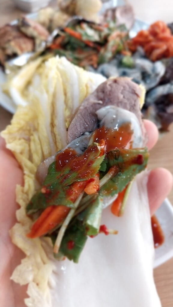 Ssam is more than just eating; it is an act of wrapping up good luck. In traditional Korean culture, we believed that by wrapping food tightly in a leaf, we were securing “Bok” (blessing/fortune) for the person eating it.