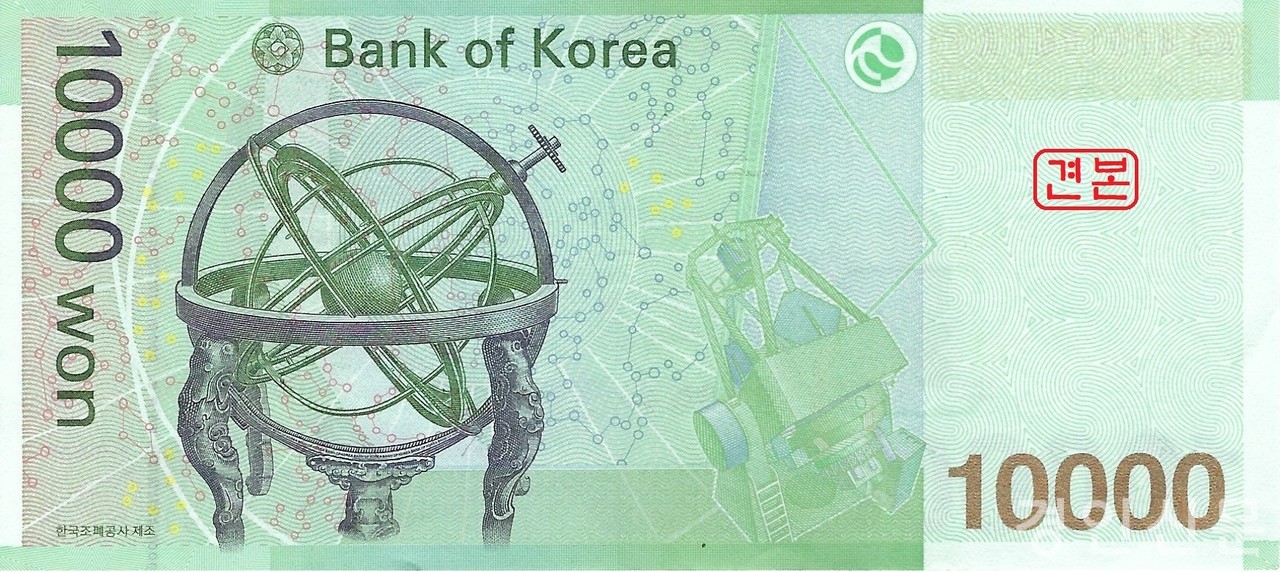 | 10,000 Won | King Sejong | Irworobongdo, Cheonsang Yeolcha Bunyajido | Anonymous (Dohwaseo), Royal Astronomers |