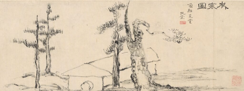 It is an “ink-dry” masterpiece—rough, simple, and stark. The pine and cypress trees in the painting symbolize the student’s unwavering integrity in the “winter” of Chusa’s life. It is the ultimate example of Muninhwa, where the story behind the brush is more powerful than the paint itself.