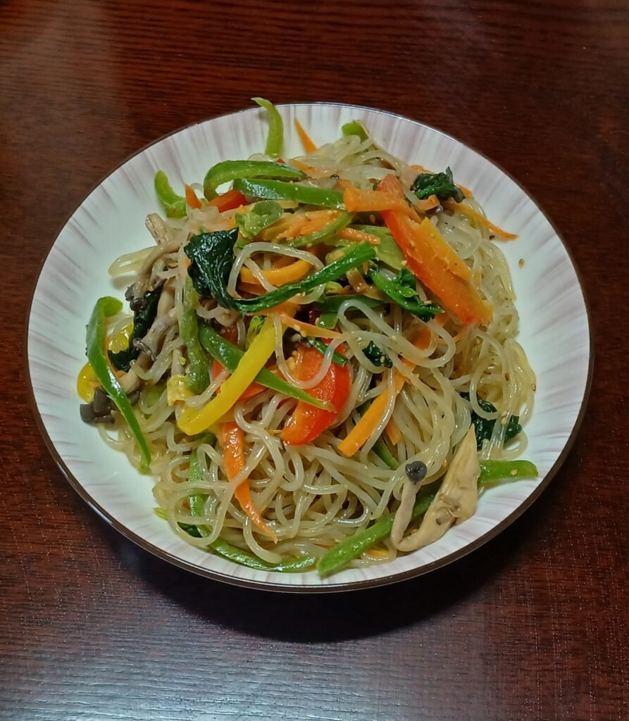 - Japchae: Unlike the others, this is a “glass noodle” dish made from sweet potato starch. Stir-fried with colorful vegetables and beef, it’s glossy, chewy, and a staple at any festive party.
