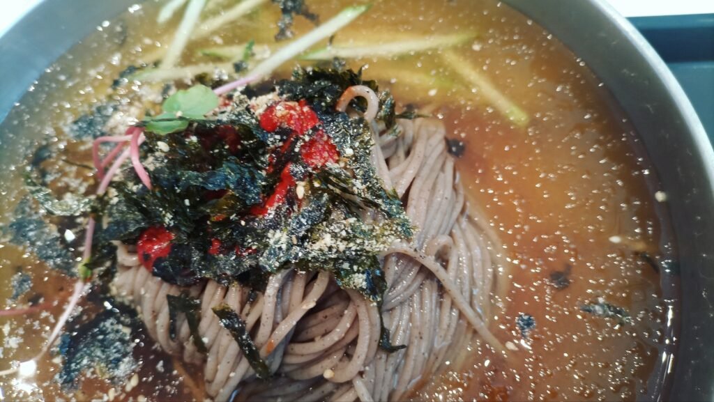 - Naengmyeon (Cold Buckwheat Noodles): This is where it gets interesting!