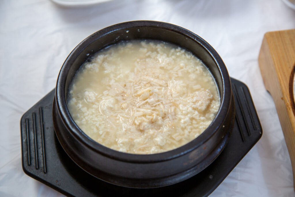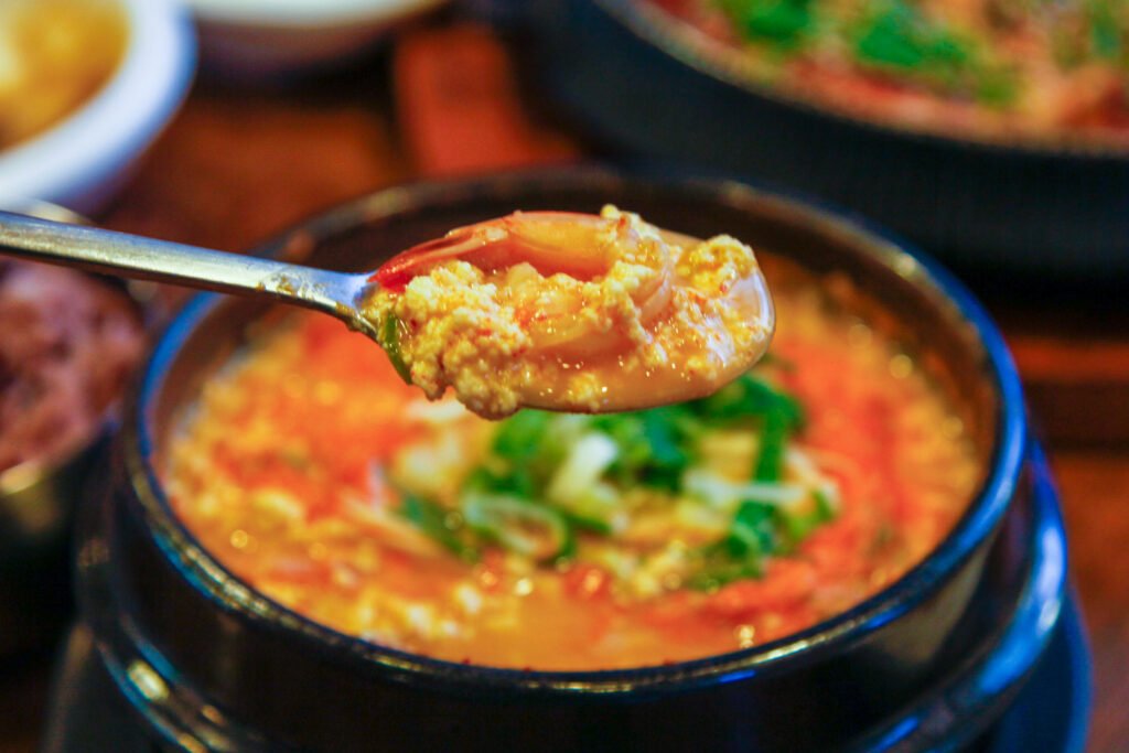 - Sun-dubu Jjigae (Soft Tofu Stew): The world-famous spicy stew. You can have it “Eolkeun” (extra spicy with chili oil) or “White” (mild and savory, highlighting the bean flavor).